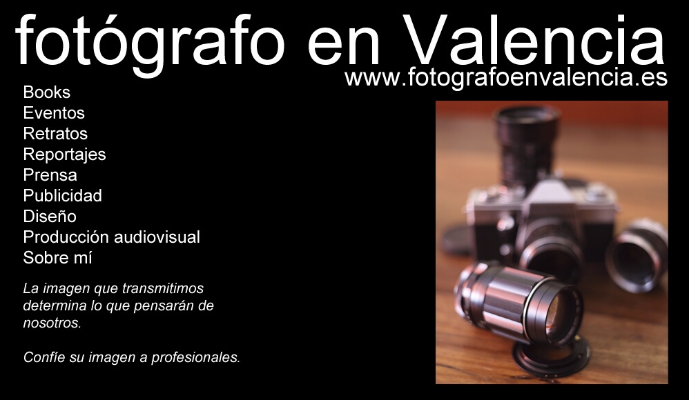 Books, eventos, retratos, reportajes, prensa, publicidad o producción audiovisual, realizamos fotografía profesional en Valencia, España, en estudio o exteriores.